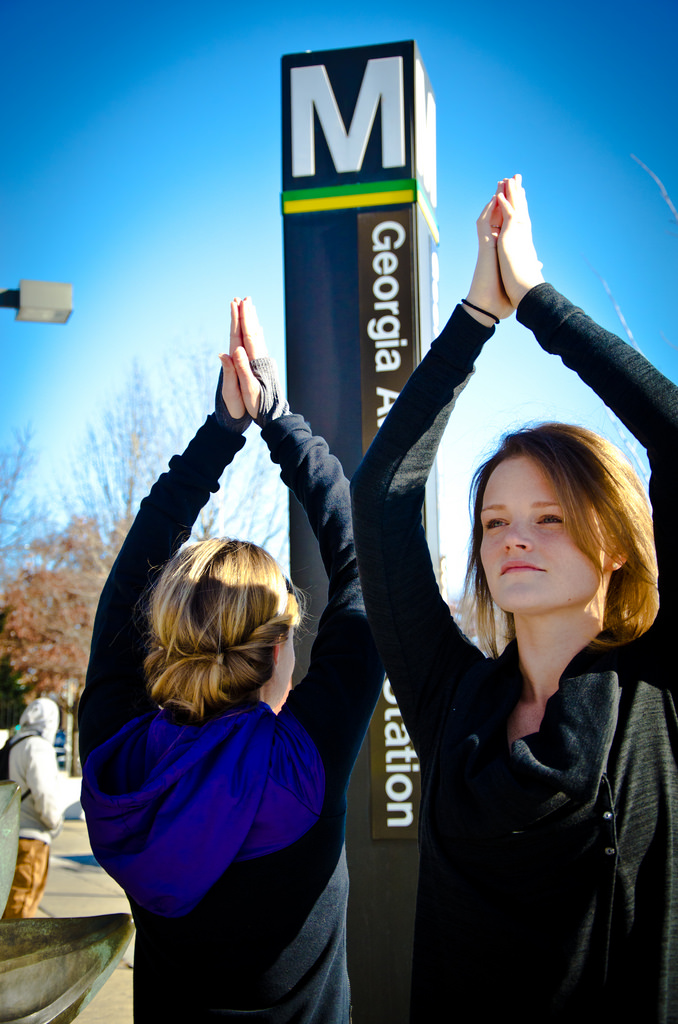 Tadasana-at-Georgia-Ave-MetroYoga Heights recently opened their doors at the intersection of Petworth, Colombia Heights, and Parkview on Georgia Avenue, a fairly rough but rapidly changing street in Washington, DC. When I visited and took a class at the new studio I was impressed by the attention to detail given by the co-owners, Amy and Jess. Every inch of the 2,388 square foot studio reflects their deep rooted intention to serve the community.